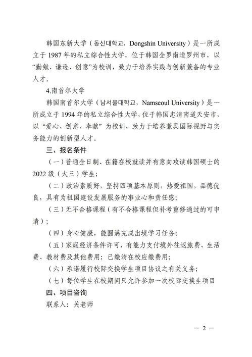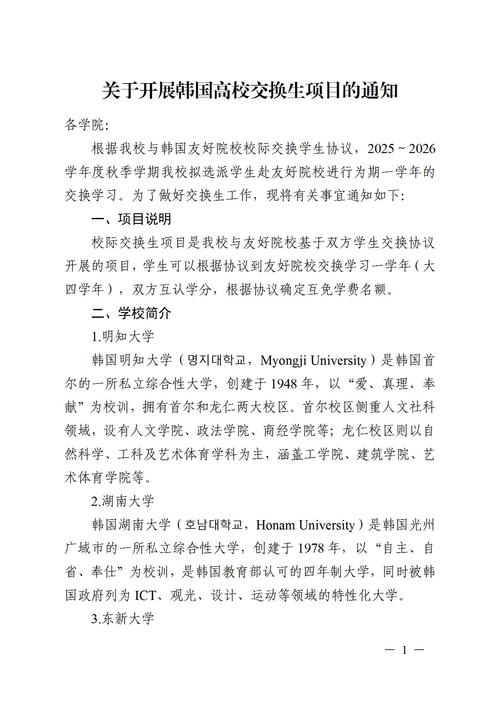 关于开展韩国高校交换生项目的通知