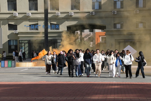 为筑牢校园安全防线,提升师生安全防范与应急处置能力,10月16日,我校举办2025年秋季消防疏散救援演练活动。副校长王玉峰、保卫处处长姚毓欢、学生处处长郭晶、各二级学院相关人员及学生代表600余人参加演练。