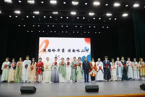 10月22日,我校在音乐厅举行以“丝路吟华裳,诗韵咏山河”为主题的第四届诗词大会暨第二届汉服文化节闭幕式。校长于长福、党委书记马旭出席活动,领导班子其他成员、各二级学院院长、党总支书记及学生代表共1000余人参加活动。