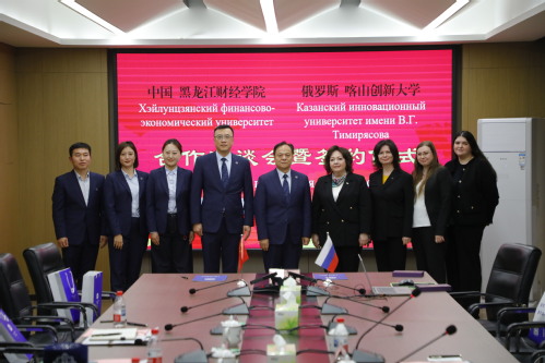 会上,双方围绕学生交流、教师互访、科研协作与联合培养等项目展开深入讨论,达成一系列共识。于长福与季米莉索娃校长共同签署《黑龙江财经学院与喀山创新大学合作备忘录》。根据协议,双方将在学生交流、师资互访、科研合作及本科与硕士联合培养等领域建立长期、稳定的合作关系。仪式结束后,双方互赠纪念品并合影留念。