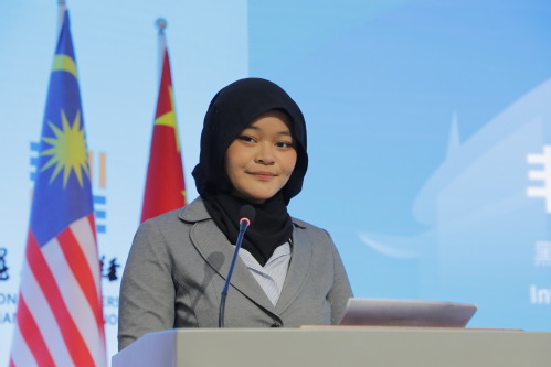 学员代表马来西亚博特拉大学学生努林·索菲亚·伊扎姆发言