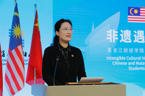 马来西亚博特拉大学学生代表努林·索菲亚·伊扎姆里分享了自己的感受。她表示,初到黑龙江财经学院就被校园浓厚的文化氛围所感染,对即将开启的非遗体验和冰雪之旅充满期待,渴望在亲身体验中感受中国传统文化的独特魅力,也愿将马来西亚的风土人情介绍给中国同学们,做中马两国文化交流的桥梁与使者。