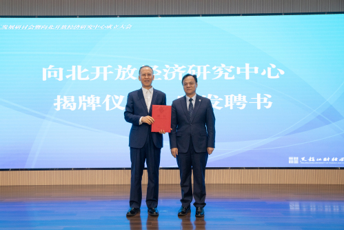 与会省市领导在致辞指出,成立“向北开放经济研究中心”既是贯彻“开放龙江”建设,服务国家“一带一路”倡议的重要举措,也是“政、校、会、企”协同联动机制的生动实践。希望研究中心能够立足高远,锚定大局紧扣我省向北开放的战略需求,聚焦跨境电商、服务贸易、数字贸易、跨境金融等新兴领域,探索制度与模式创新,围绕实践中面临的关键问题,开展前瞻性、针对性研究;充分发挥高校的智力人才与社会组织的网络渠道双重优势,推动资源共享、优势互补,形成协同发展聚合效应;秉持开放理念,广泛吸纳国内外相关领域专家参与,创新运行机制,强化成果转化,切实提升服务地方经济社会发展的能力。