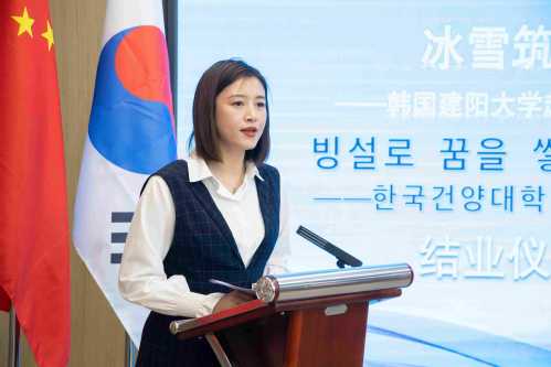 关苗苗对本次研学活动进行总结。她指出,此次研学是一场关于学术、历史、文化与友谊的深度对话,更是一次大学精神的互鉴之旅,研学过程中,韩国建阳大学学子不仅触摸到了中国高等教育的多元脉络,为两校未来的合作埋下了思想的种子;通过参观侵华日军第七三一部队罪证陈列馆与安重根义士纪念馆,体悟和平发展的珍贵,开启了一场关于共同历史记忆与和平愿景的深刻思索;漫步中央大街等地标性场所,学子们感受这片土地的独特底蕴与人文温度,完成了一次沉浸式的地域文化体验;在联谊晚会的互动交流中,真切认识到友谊同行从来不是一句口号,而是青年学子携手共创的美好图景。她强调,此次研学为中韩两国青年搭建起沟通的桥梁,织就了友好交往的青春纽带。愿以此次研学为新起点,两校的合作如松花江水流淌不息,如冰雪之灯常亮常新,持续焕发新的生机。