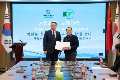 1月14日,我校“冰雪筑梦·友谊同行”韩国建阳大学短期研学活动结业仪式在尚德楼第二会议室举行。副校长徐雷,建阳大学经营系院长全希晙、助教老师赵忠祥及中韩师生代表参加仪式,国际合作与交流处副处长关苗苗主持仪式。
